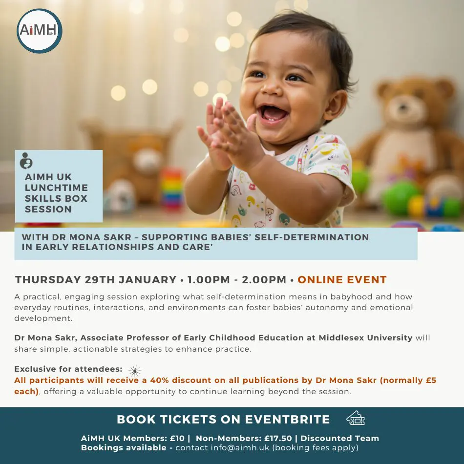 AiMH UK CPD Events are open to all professionals working in the field of infancy and early years. Membership includes complimentary or discounted access to the Lunch-time Skills Box Sessions and all AiMH Networking Events, as well as discounts on AiMH UK Conferences.