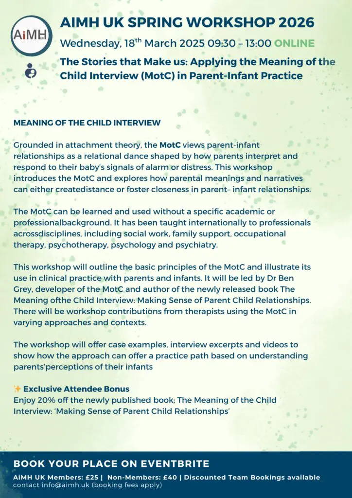 We’re using JustGiving, for donations to AiMH UK. Your donation enables us to continue our work, promoting the importance of infant mental health and making a real difference to improve outcomes for parents, babies and toddlers.